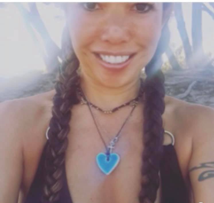 This heart-shaped clay pendant was made by a potter in Mallorca, the colour inspired by the oceans in summer.